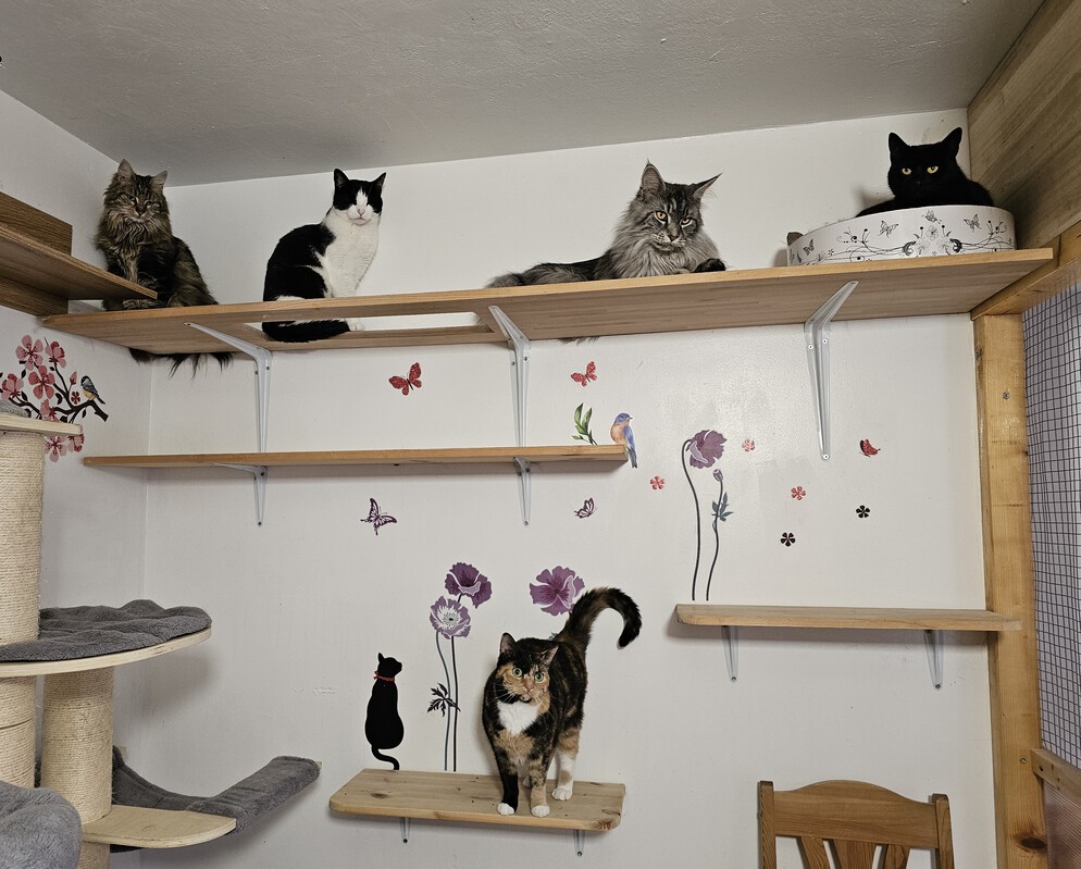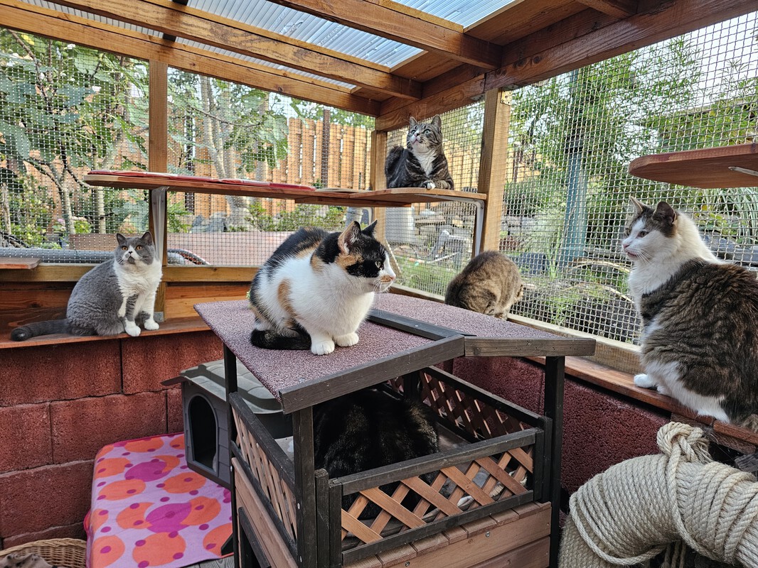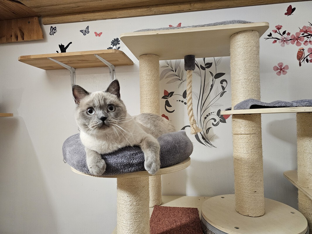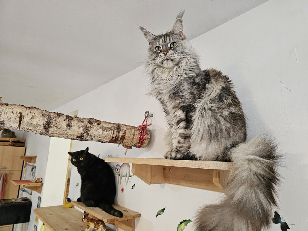 Die Katzenräume sind innovativ, abwechslungsreich und artgerecht eingerichtet. Es gibt ausreichend Versteck-, Kletter- und Spielmöglichkeiten, und jede Katze kann ihren bevorzugten Rückzugsort finden.
